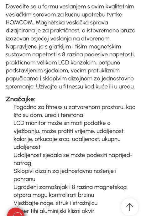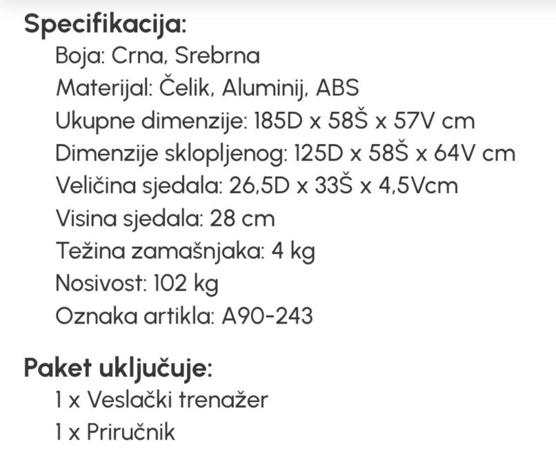 Prodajem veslački ergometar, potpuno nov. Sprava ima čvrstu metalnu konstrukciju s kliznim sjedalom i nosačima za stopala s remenom. Opremljena je digitalnim displejom za praćenje podataka tijekom vježbanja. Sustav otpora je magnetski, s mogućnošću podešavanja intenziteta.
