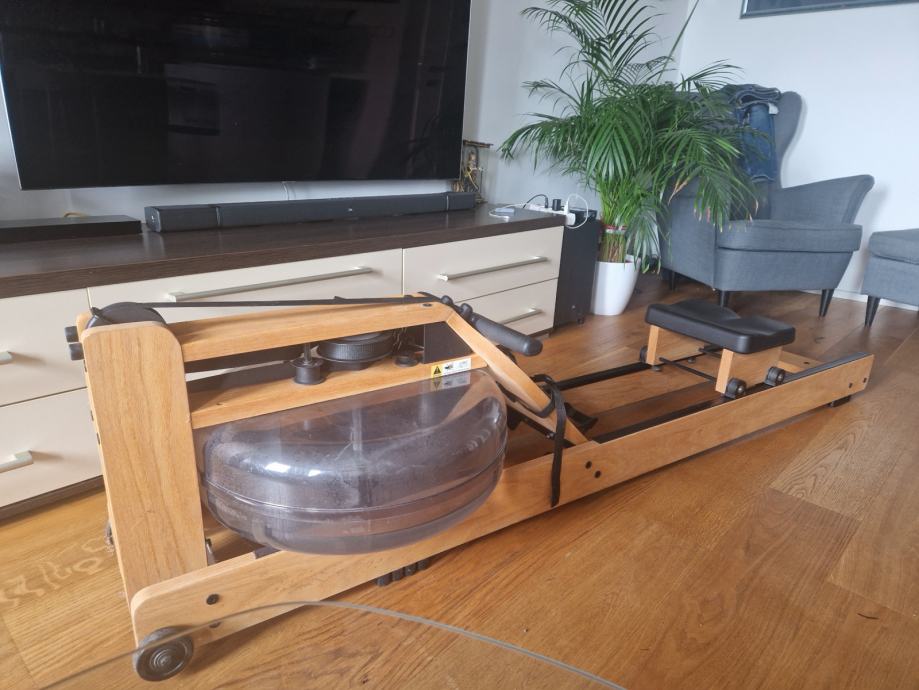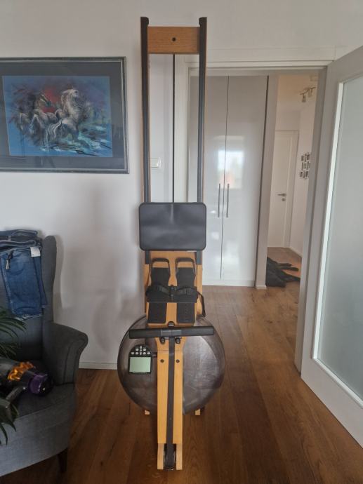 WaterRower je lagan i lako prenosiv trenažer za veslanje koji ne zauzima previše prostora, posebice ako je položen uspravno.