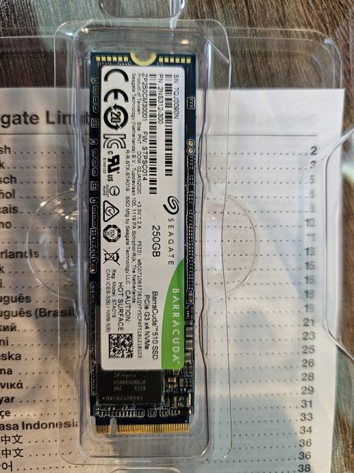 Seagate BarraCuda 510 256 GB M.2 NVMe SSD – rabljeno, ispravno