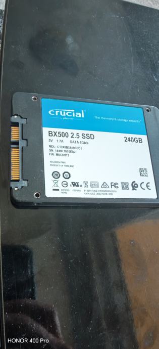 SSD 240GB CRUCIAL BX500, CT240BX500SSD1, SATA3, 2.5", maks do 540/500 MB/s