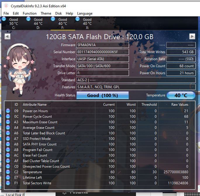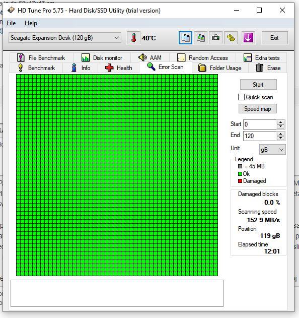 Testiran i 100% ispravan. Napravljen LLF (Low Level Format) koji je prošao bez greške, nakon čega su testirani svi sektori sa HD Tune programom. Ispis SMART statusa nalazi se na slikama. Izvađen je iz novog laptopa gdje je stavljen veći SSD te se nalazi u perfektnom stanju, kao nov. Posjeduje 100% preostalog životnog vijeka (wear level), samo 21 radni sat i 500GB pisanja, uglavnom testiranja i slično. Nema potrošenih rezervnih blokova ili bilo kakvih prošlih problema.