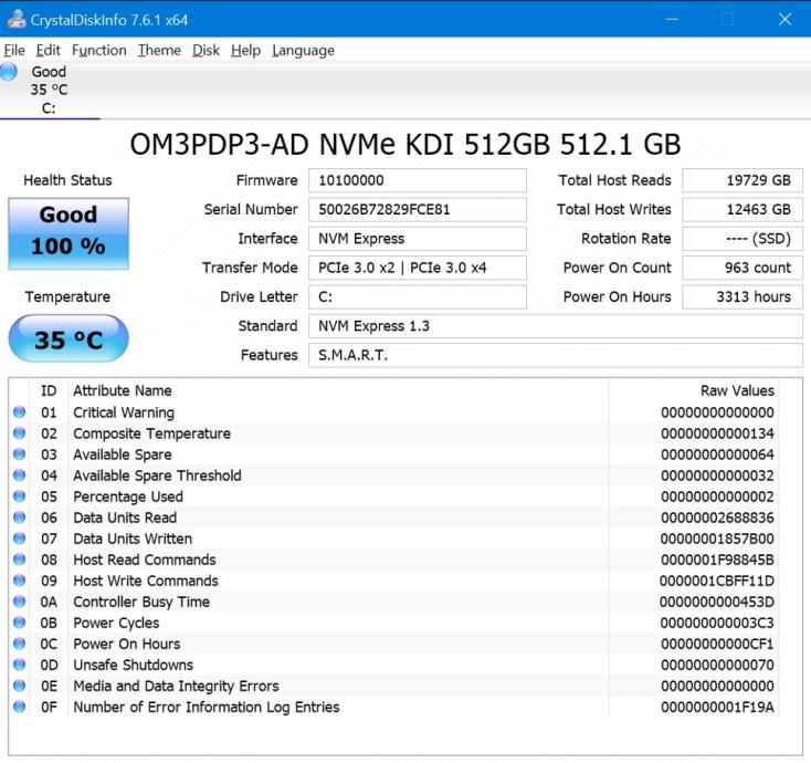 Interface: PCIe Gen 3.0 x4