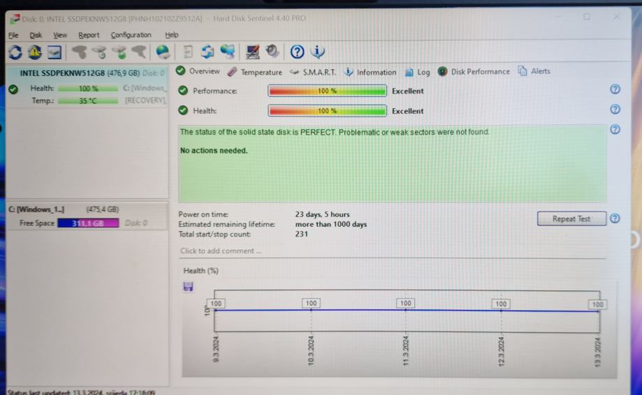 Moguća provjera ispravnosti pri preuzimanju s mojim laptopom i HDD Sentinelom ili sl. test alatom.
