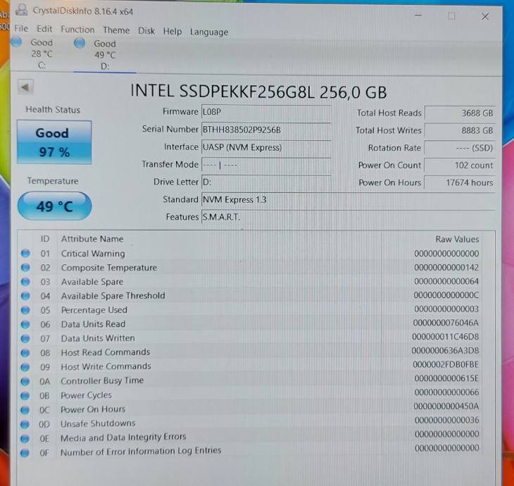 SSD disk INTEL 256GB NVMe