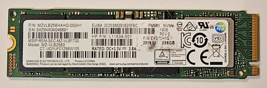 SAMSUNG 256GB PCIe-NVMe SSD, 2280 M.2 MZVLB256HAHQ-000H1