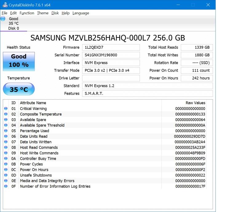 SAMSUNG 256GB PCIe-NVMe SSD, 2280 M.2 MZVLB256HAHQ-000L7