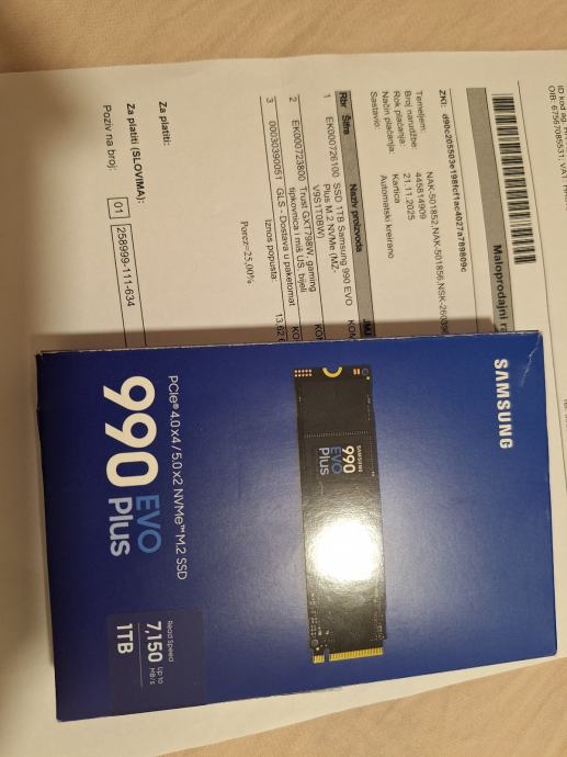 Prodajem Samsung 990 EVO Plus SSD kapaciteta 1TB. Radi se o M.2 disku s PCIe 4.0 x4 / 5.0 x2 NVMe sučeljem, brzine čitanja do 7150 MB/s. Disk je rabljen nekoliko sati za prebacivanje podataka sa jednog računala na drugo.