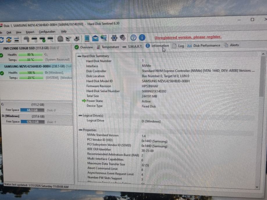 Prodajem Samsung SSD kapaciteta 256GB s M.2 sučeljem. Disk je u potpuno ispravnom stanju i testiran je