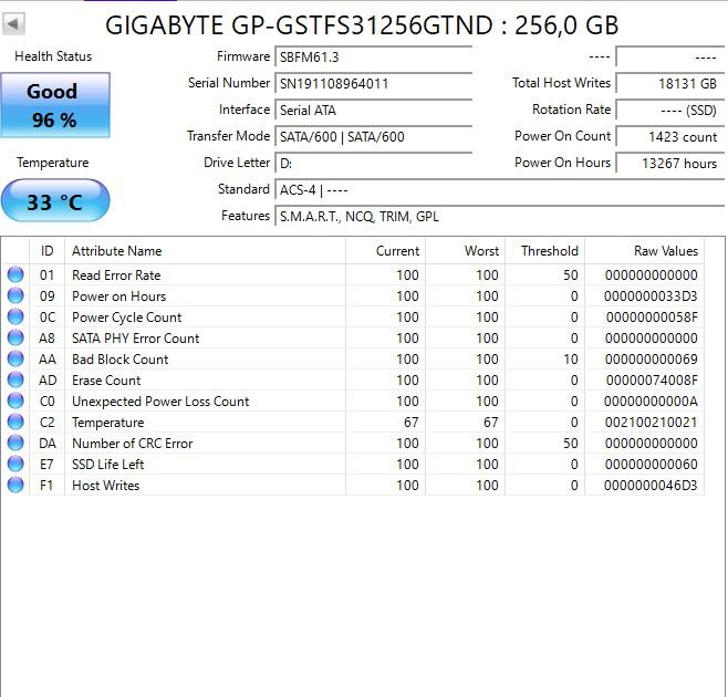 SSD 256 GB GIGABYTE