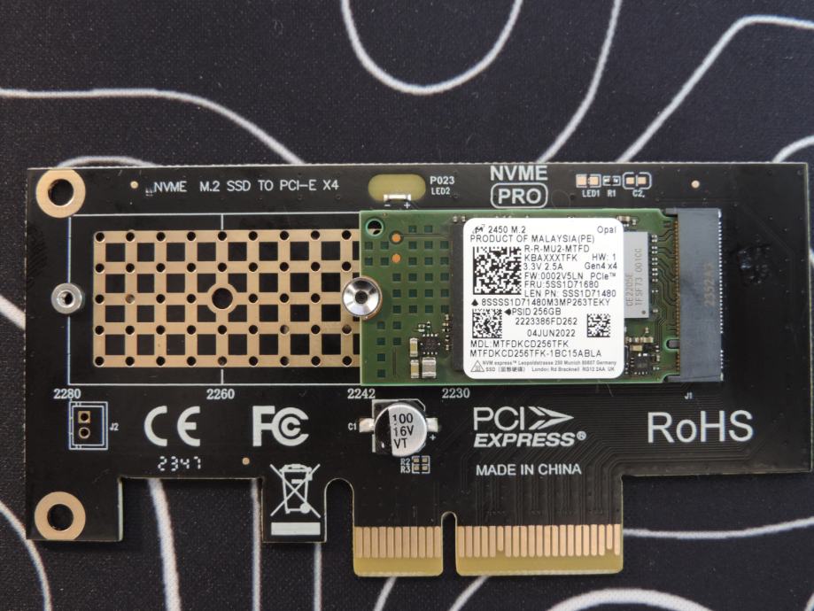 Dolazi zajedno sa adapterom za ugradnju u desktop računala, bilo koje računalo sa slobodnim PCI-E x4 utorom (PCIe x4 x8 x16).