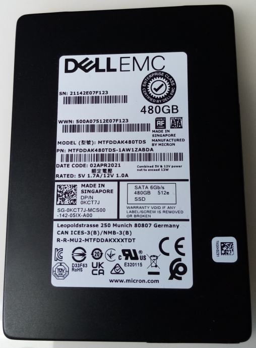 SSD SERVER DELL EMC / MIKRON 480GB 2.5" MTFDDAK480TDS-1AW1ZAB / 0KCT7J