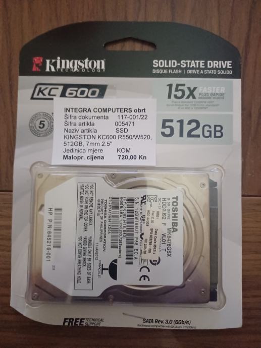 Prodajem NOVI DISC DRIVE TOSHIBA 512GB--7 MM--2.5"