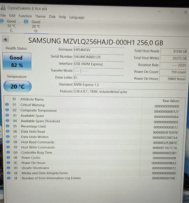 SSD disk nvme SAMSUNG 256GB