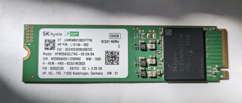 Prodajem Hynix SSD 256 GB, M.2 2280, PCIe 3.0 NVMe, rabljen i ispravan.