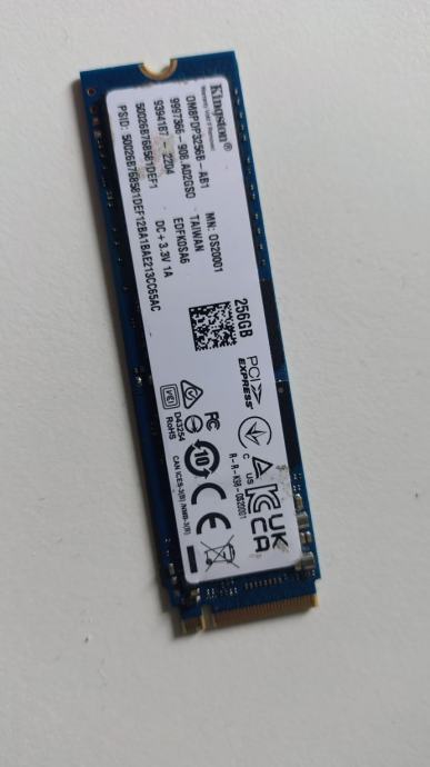 Prodajemi ispravan, SSD veličine 256GB, deklarirane brzine čitanja/pisanja 2400/1100 MB/s, Interface – PCIe Gen.3 x4