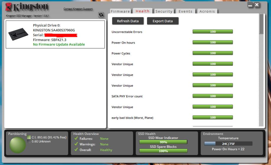 Ispravan, korišten jako kratko (Power On Hours = 22).