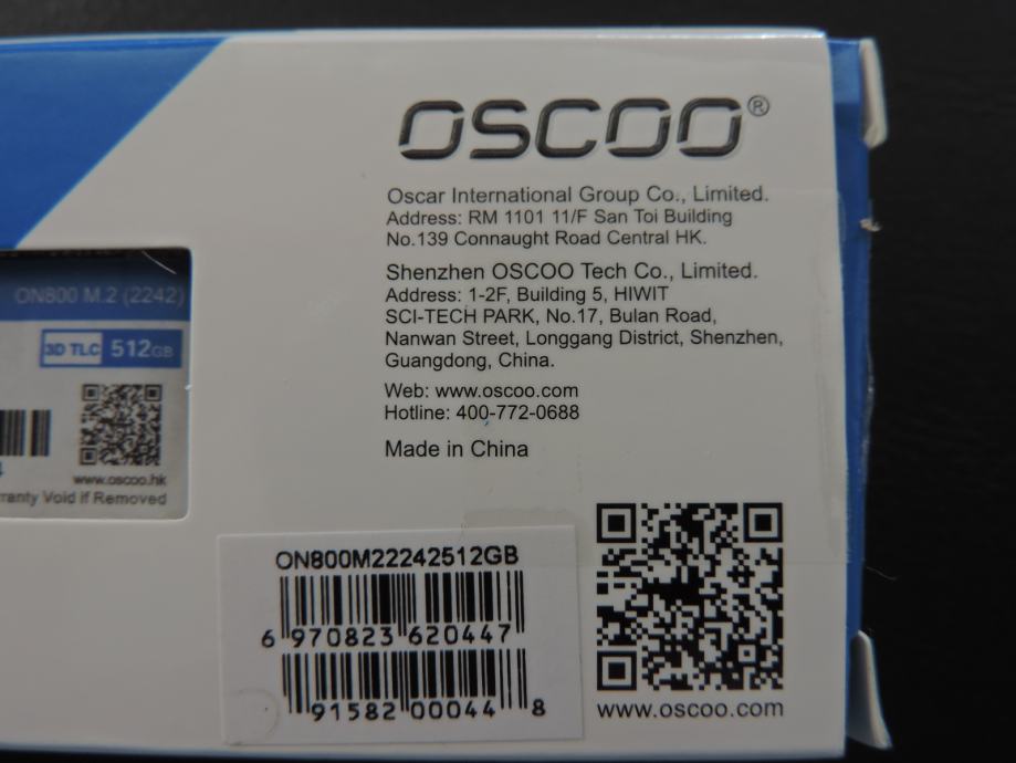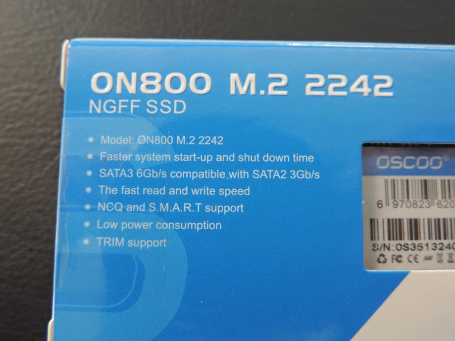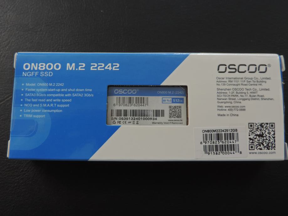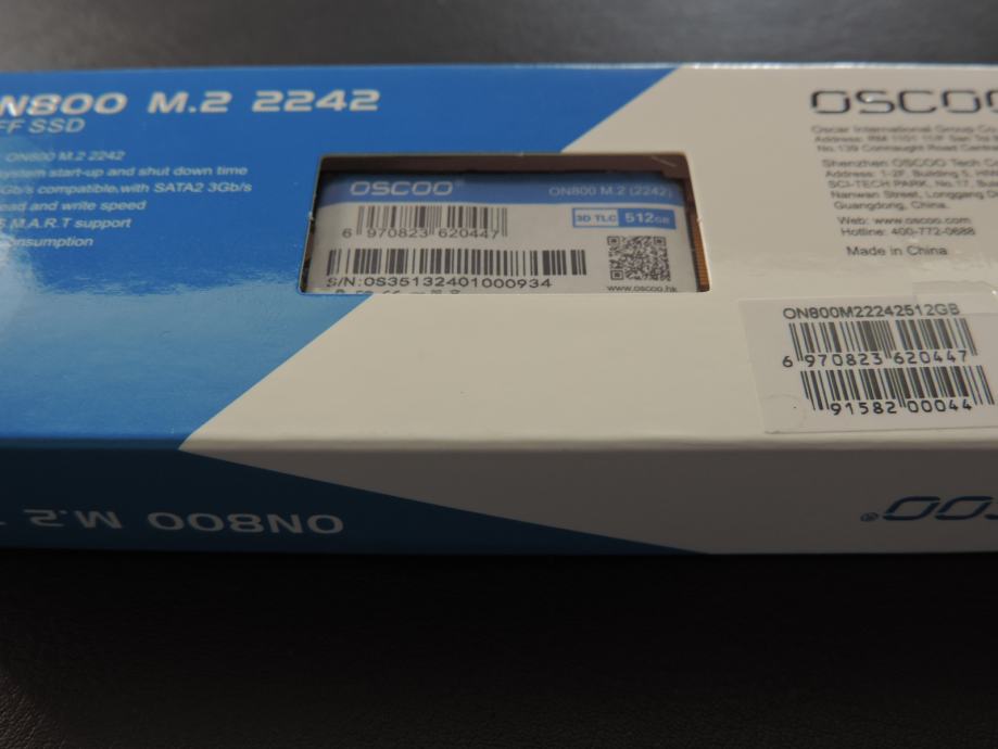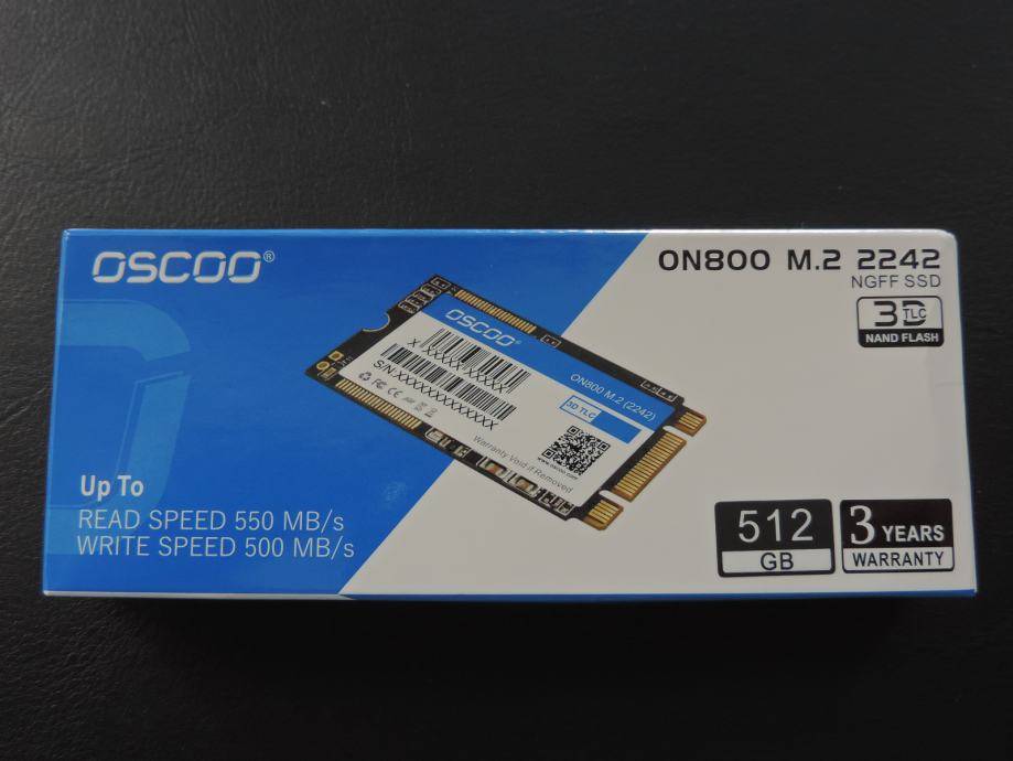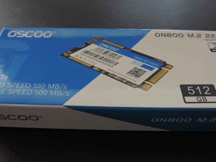Na prodaju novi SSD M.2 2242 NGFF (B i M Key) OSCOO, model ON800 od 512GB, u originalnoj ambalaži. Garancija proizvođača je 3 godine.