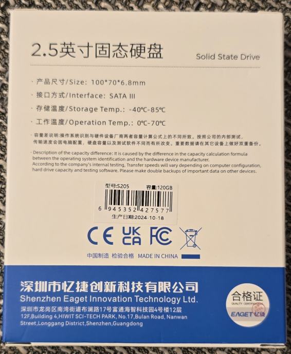 SSD Tvrdi disk - EAGET 120GB SSD Solid State Drive - 6.35 cm SATA III High-Speed Storage with Rigorous Testing, Wide Compatibility, and Fast Response