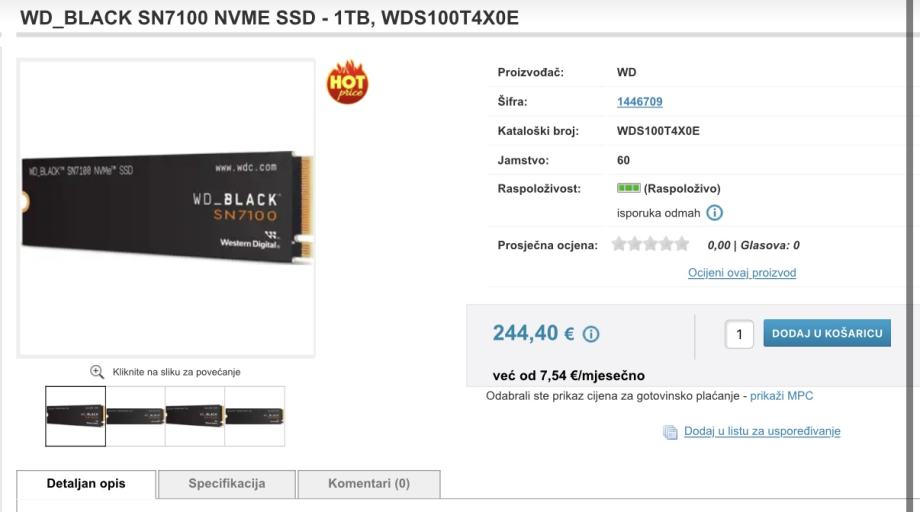 Made with state -of -the -art technology WD_Black SN7100 NVME ™ SSD, equipped with PCIE® GEN4 interface, driven by the next generation TLC 3D NAK Western Digital®, is designed to provide speed and Energy efficiency needed by serious gamers on the go.