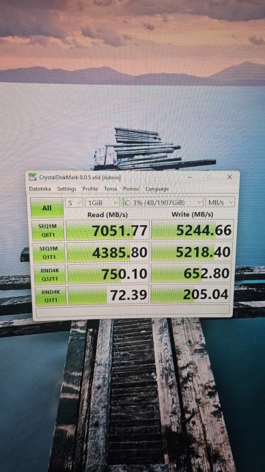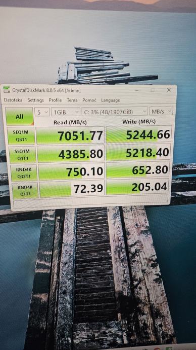 -Brzina čitanja (Read): 7051 MB/s (izmjereno na mom kompjuteru).