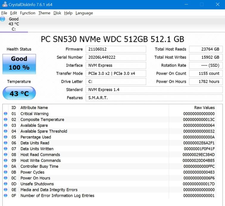 prodajem rabljeni, ispravni i testirani Western Digital PC SN530 NVMe M.2 2230 30mm PCIe Gen3 x4 SDBPTPZ--512G