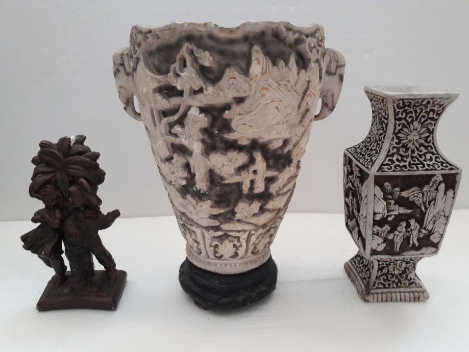 1 ukrasna japanska vaza, 1 s reljefom prirode,figura djevojčica-dječak