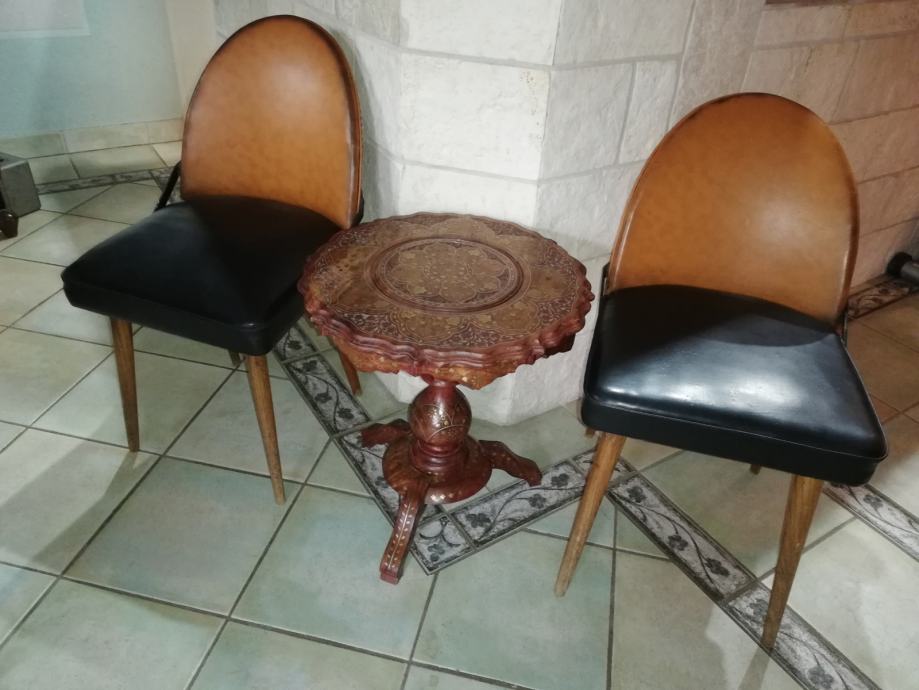 Dvije blagovaonske stolice u stilu Antonina Sumana, koji je radio za Thonetova tvornicu u Čehoslovačkoj . Ove stolice su izrađene u Mađarskoj između 1950. i 1960., po licenci. Ova stolica kombinira stari drveni okvir, drvene noge, čvrsto sjedište i naslon, koje su dodatno povezani željeznom spojnicom sa strane , sjedište i naslon obloženi kožom, u prekrasnoj kombinaciji crne i smeđe.