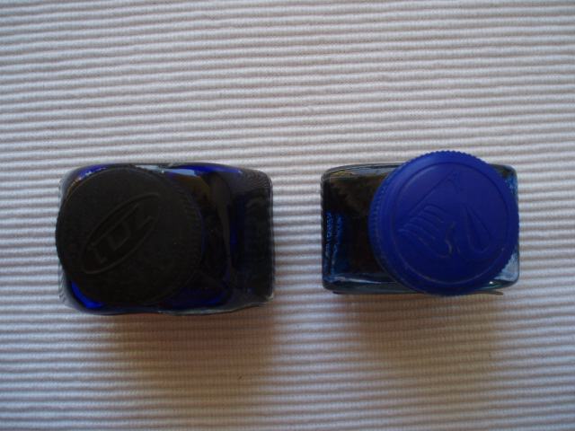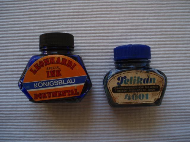 2 stare bočice tinte za nalivpera, dopola pune, jedna firme Pelikan, a druga TOZ-Leonardi.
