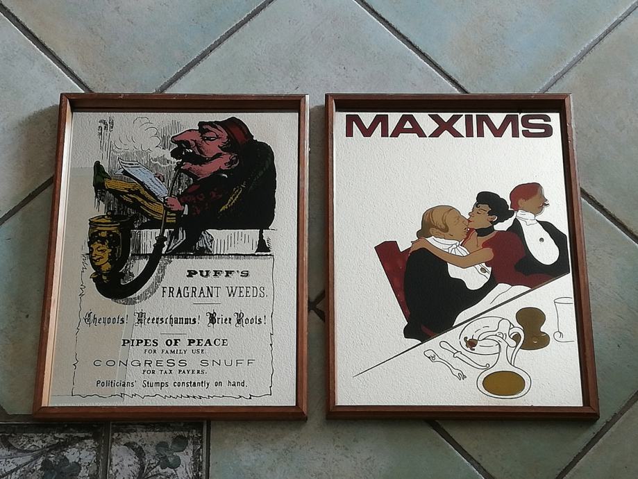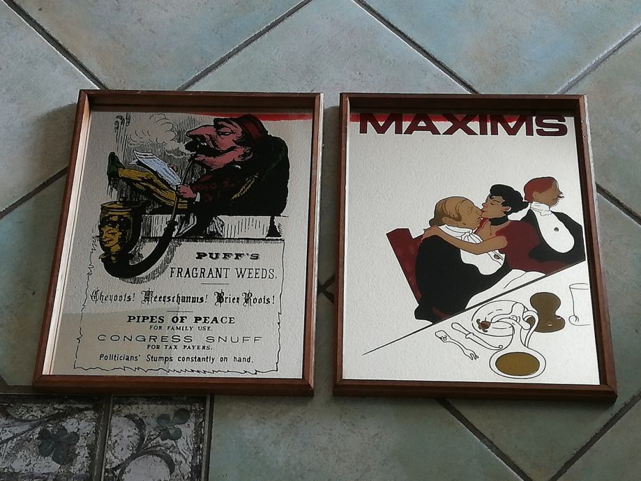 Vintage barska reklamna zrcala, 2 komada, uramljena. U odličnom stanju. Iz privatne kolekcije. Dimenzije : 30 x 40 cm.