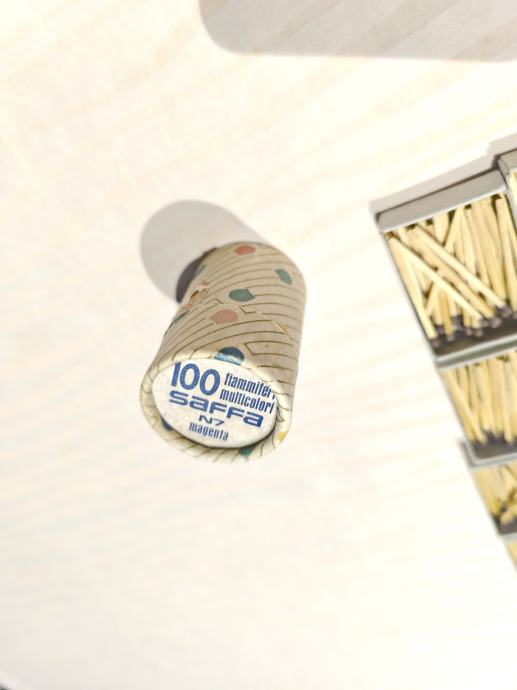 1 okgrula kutija šibica. Šibice su u raznim bojama, kao na slici, fiammiferi multicolori, saffa N7 magenta