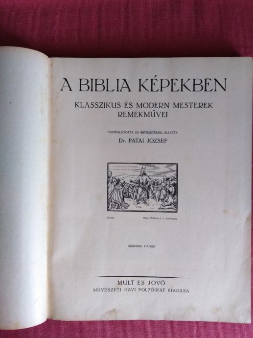 Stara, rijetka knjiga odlično očuvana. Izdana početkom dvadesetog stoljeća u Budimpešti, pisana mađarskom jezikom. Biblija u slikama, 150 slika, remek djela klasičnih i modernih majstora. Na zadnjim koricama pečat GOTETERMAYER N. BUDAPEST. Tvrdi uvez, 240 stranica, format 29x23 centimetra.