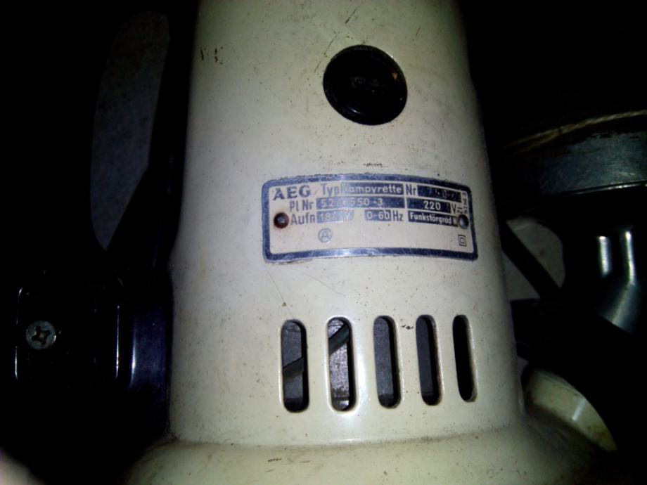 Vintage AEG usisavač, NO 250, 180W, 220V. Super očuvan. Ispravan, kompletan, sve originalno. Proizveden pedesetih godina, Elektron Samobor, apsolutni vintage dizajn.