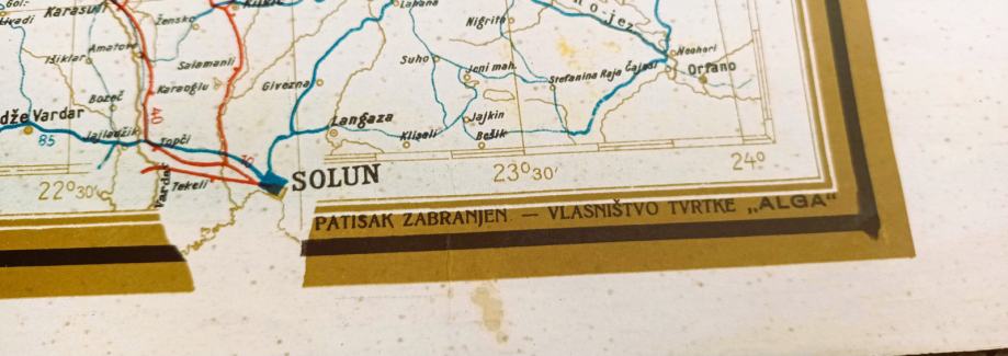 Plakat Alga Sušak-Energin , reklame iz 1930-te na zemljovidu, 100×70cm