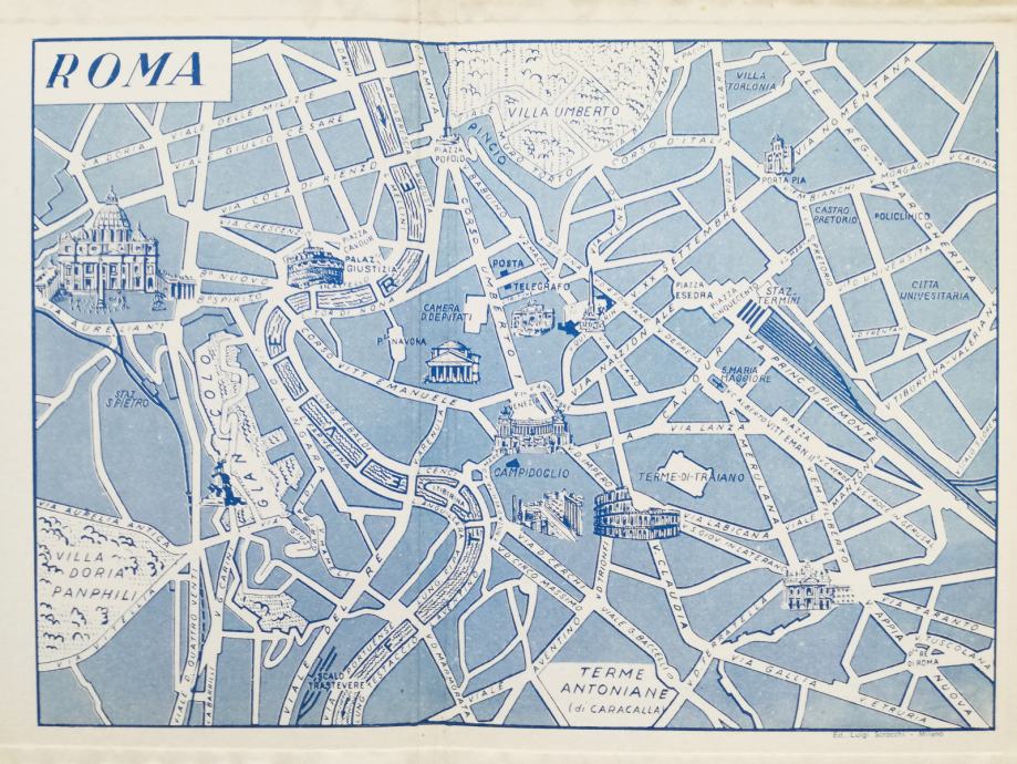 Ova lijepa sklopiva suvenir knjiga obuhvaća rimske ruševine, skulpturu i umjetnost, s opisima na poleđini svake stranice na sedam različitih jezika: engleskom, talijanskom, francuskom, njemačkom, švedskom i japanskom