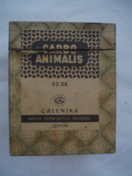 Staro pakovanje Carbo animalisa, Galenike -Fabrike farmaceutskih proizvoda Zemun, od 50 gr