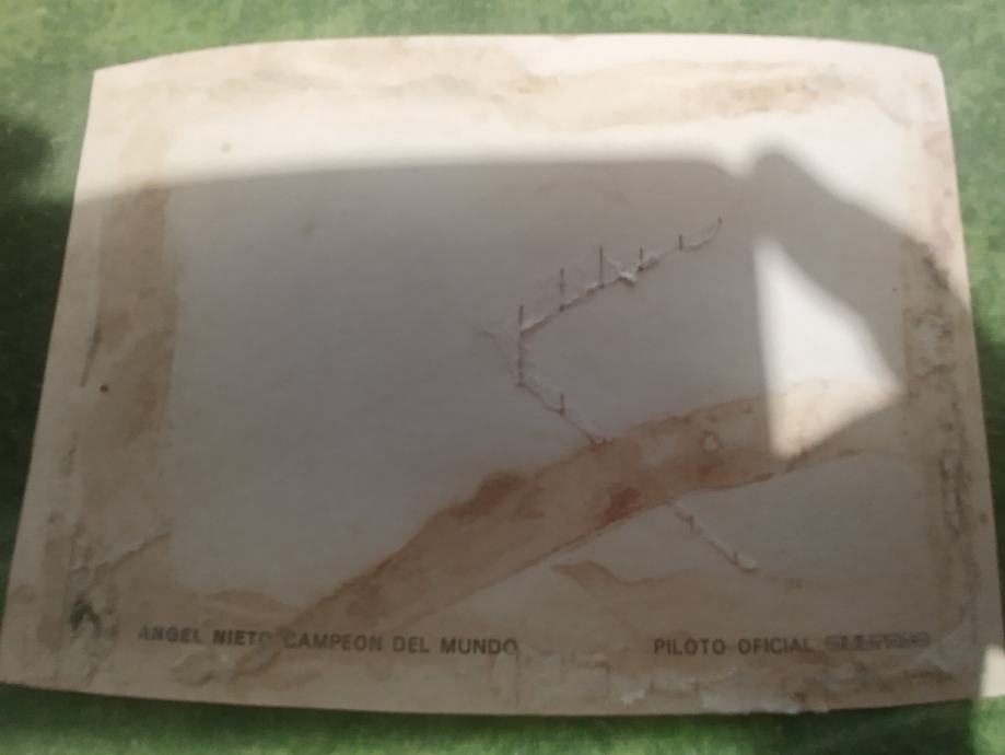 Prodajem staru reklamnu fotku Španjolskog moto prvaka Angela Nieta, veličina razglednice, bio je 13 puta prvak svijeta. Plačanje na račun ili gotovina.