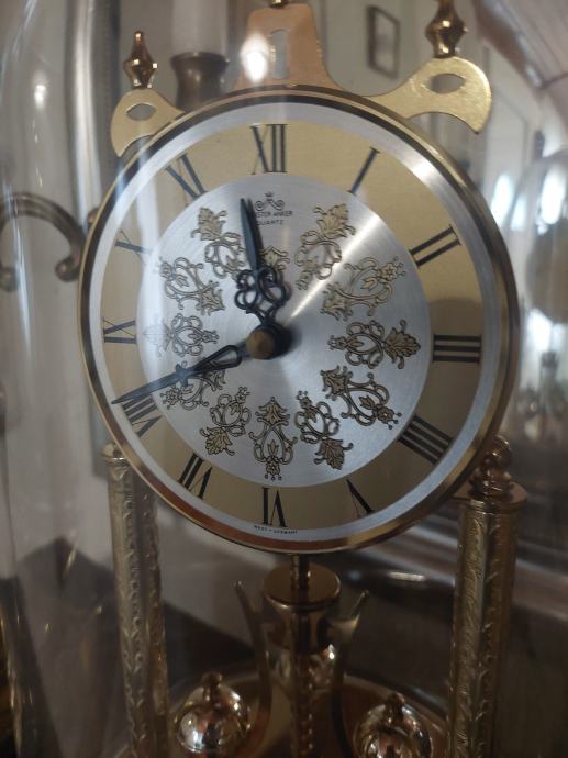 Sat je izrađen u Njemačkoj (West Germany), ima kvarcni mehanizam i dekorativno torzijsko njihalo koje se lagano okreće.