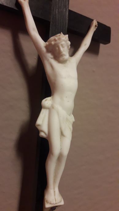 Isus na drvenom križu iz 19. stoljeća. Originalna boja.