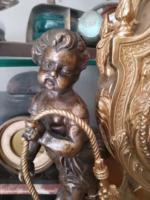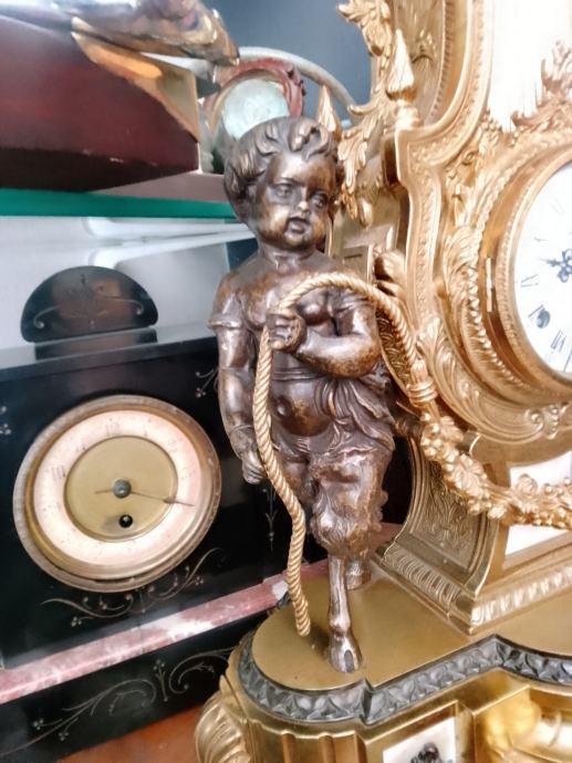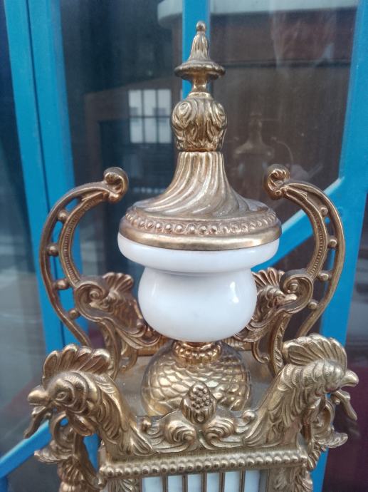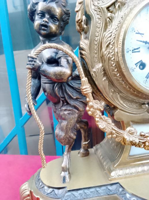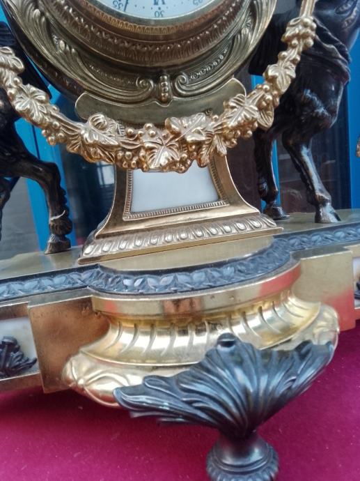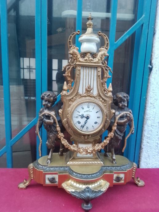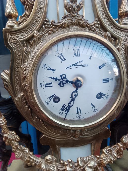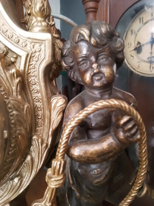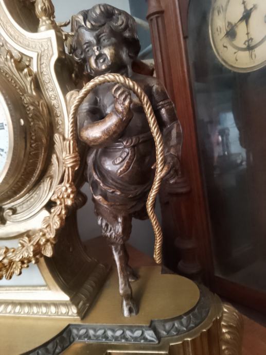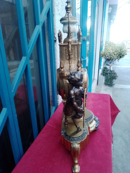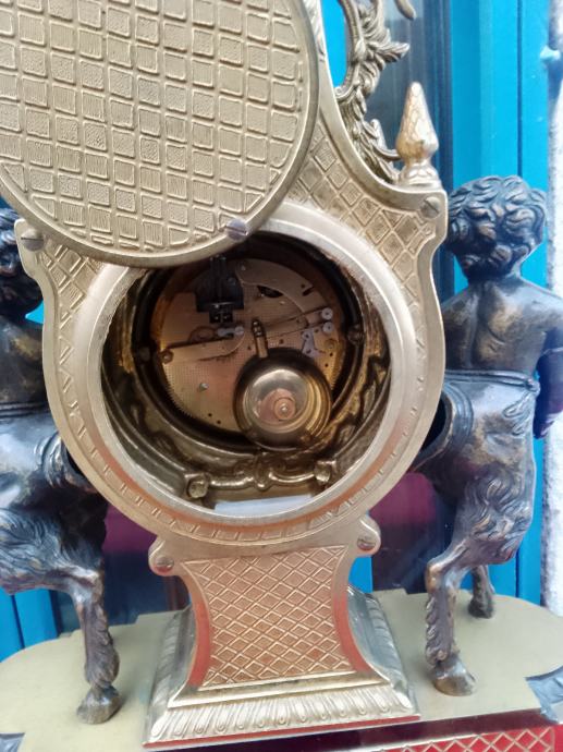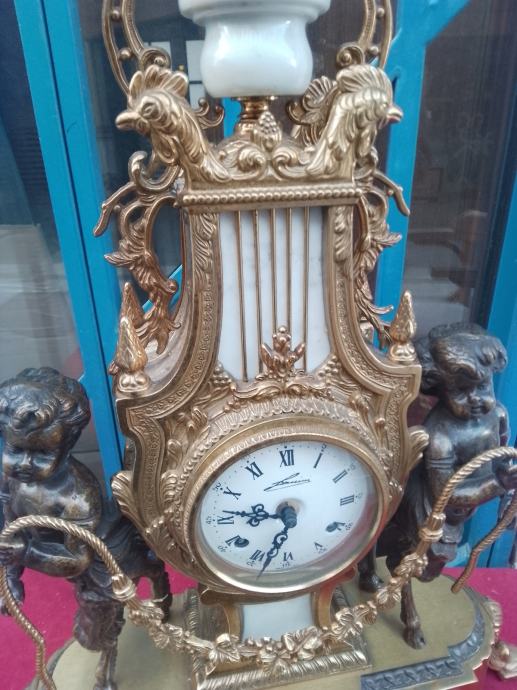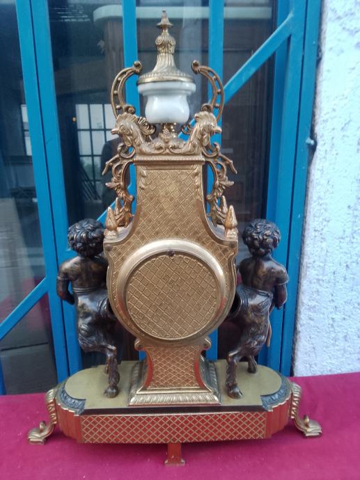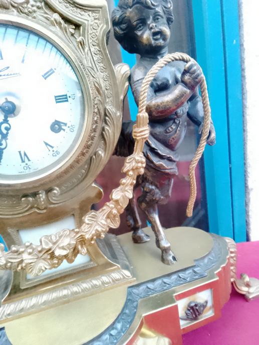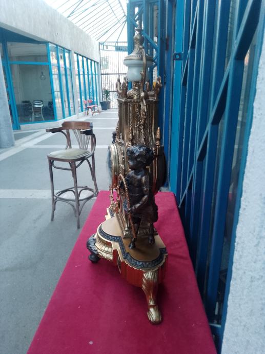 Prodajem sat sa slike,bronca mesing porculan. Dim: dužina 46 cm , visina 60 cm