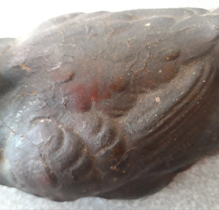STANJE IGRAČKE JE PERFEKTNO DO I NAJSITNIJEG DETALJA NA ISTOJ.KADA SAM DOŠAO U POSJED ISTE, NISAM SE MOGAO NAČUDITI,BIO SAM OČARAN NJENOM OČUVANOŠĆU I IZGLEDOM.KAKO DA IGRAČKA TOLIKO STARA BUDE TAKO OČUVANA JER KAO ŠTO SAM REKAO, RAĐENA JE OD TERAKOTE A SVI ZNAMO KAKAV JE TO MATERIJAL. ŽAO MI JE ŠTO TRENUTNO NEZNAM O KOJOJ MANUFAKTURNOJ TVORNICI JE RIJEČ KAO I TO GDJE SAM VIDIO JEDNU DRUGU ANTIK PATKU ISTO RAĐENU OD TERAKOTE I ČIJA CIJENA JE BILA 1500 AMERIČKIH DOLARA.OVAJ MOJ PRIMJERAK GLINENE PATKE JE DOSTA PRIVLAČNIJI I U SVAKOM POGLEDU OČUVANIJI.OVA PERFEKTNO OČUVANA GLINENA PATKA DANAS JE JEDAN POŽELJAN PRIMJERAK DAVNIH VREMENA I SIGURAN SAM DA BI ZANIMAO MNOGE.