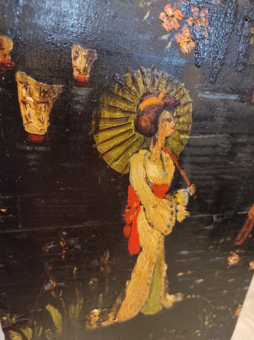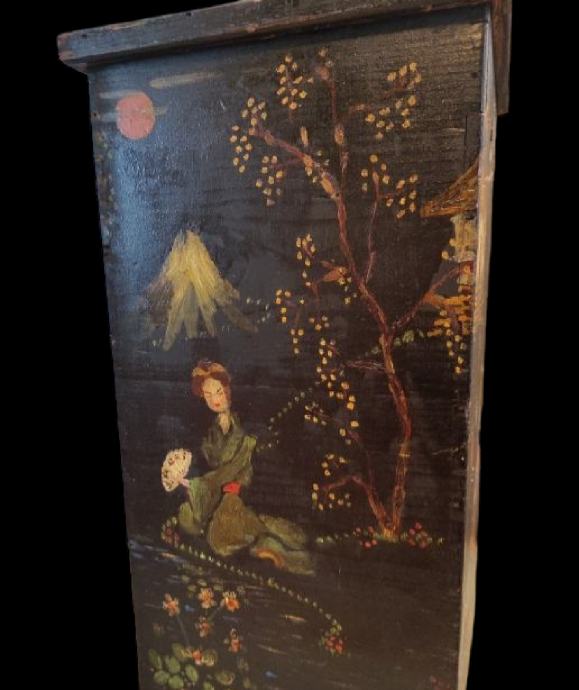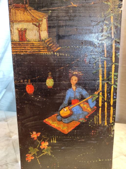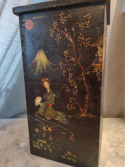 •Prekrasna japanska,ručno oslikana drvena kutija za vazu. •Kompletno oslikana sa svih strana.