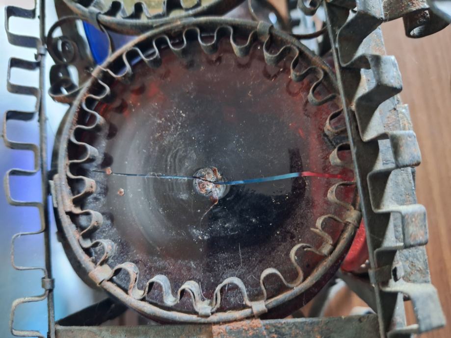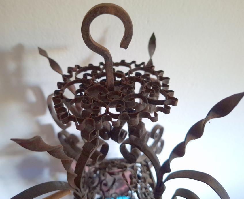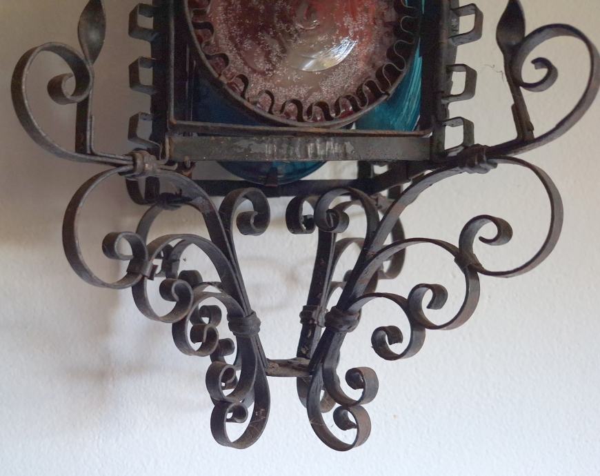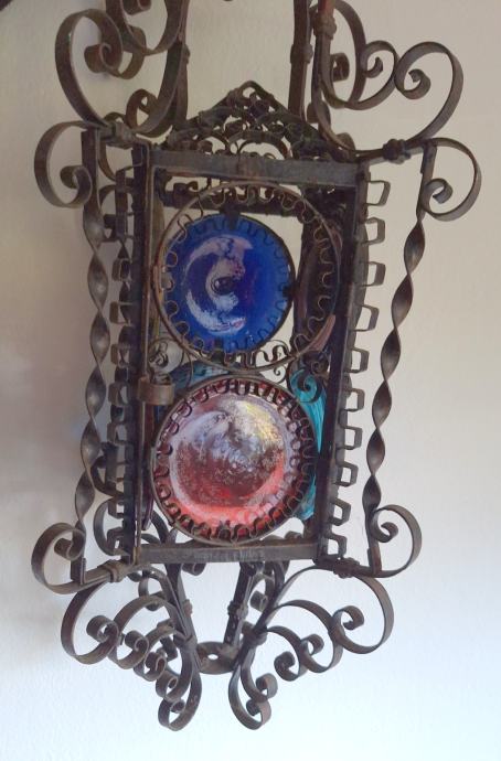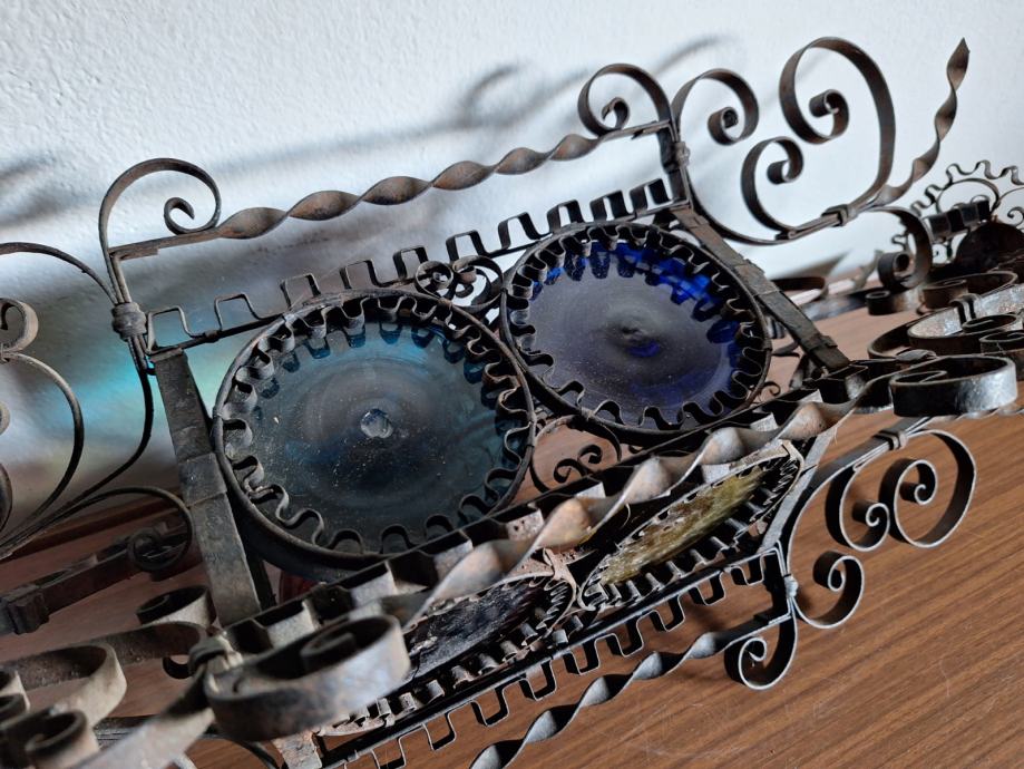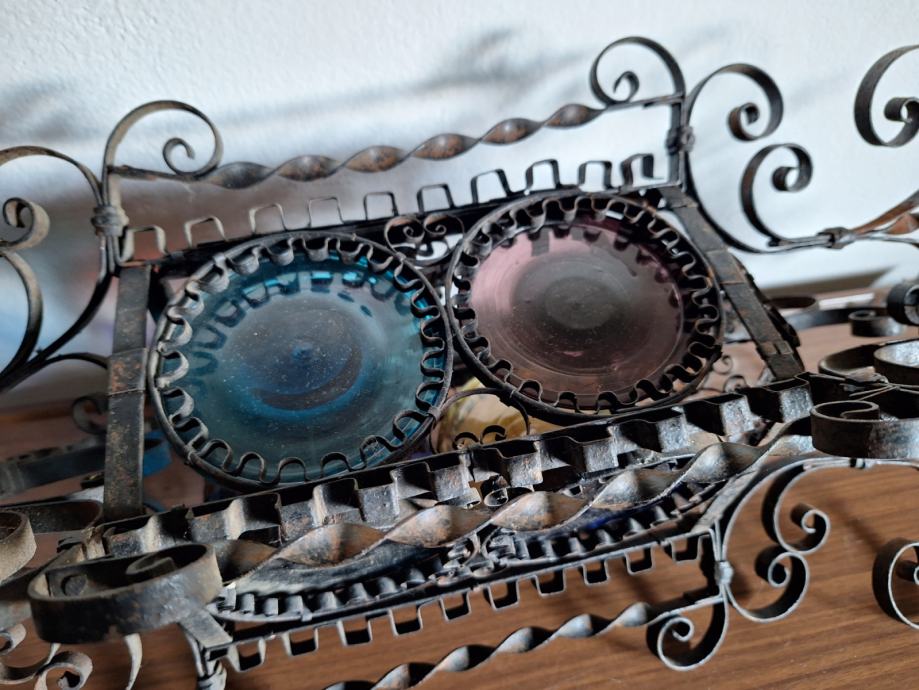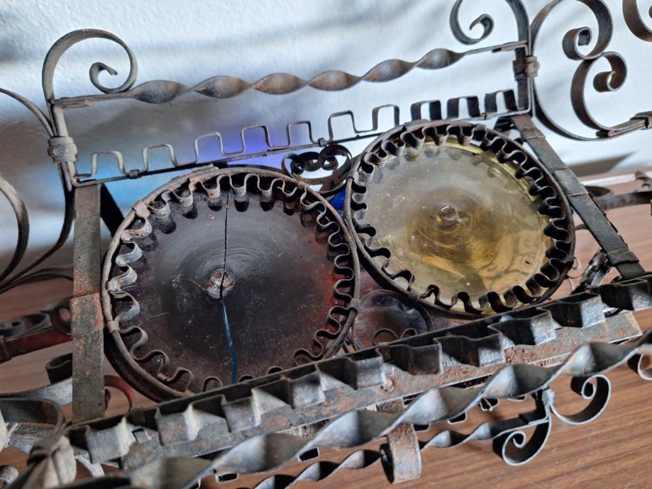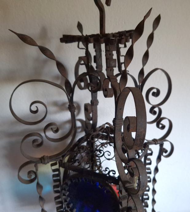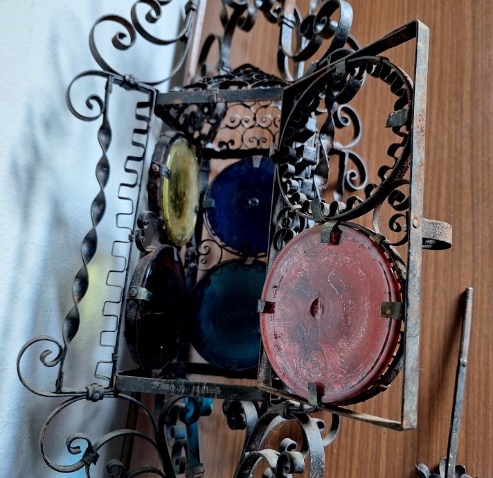Unikatni viseći svijećnjak, potrebna restauracija (nedostaje jedno staklo, jedno je razbijeno), ručno izrađen iz doba Austro-Ugarske monarhije, 60x29 cm, težina 2200 grama, detalji i cjelokupno stanje vidljivi na slikama...