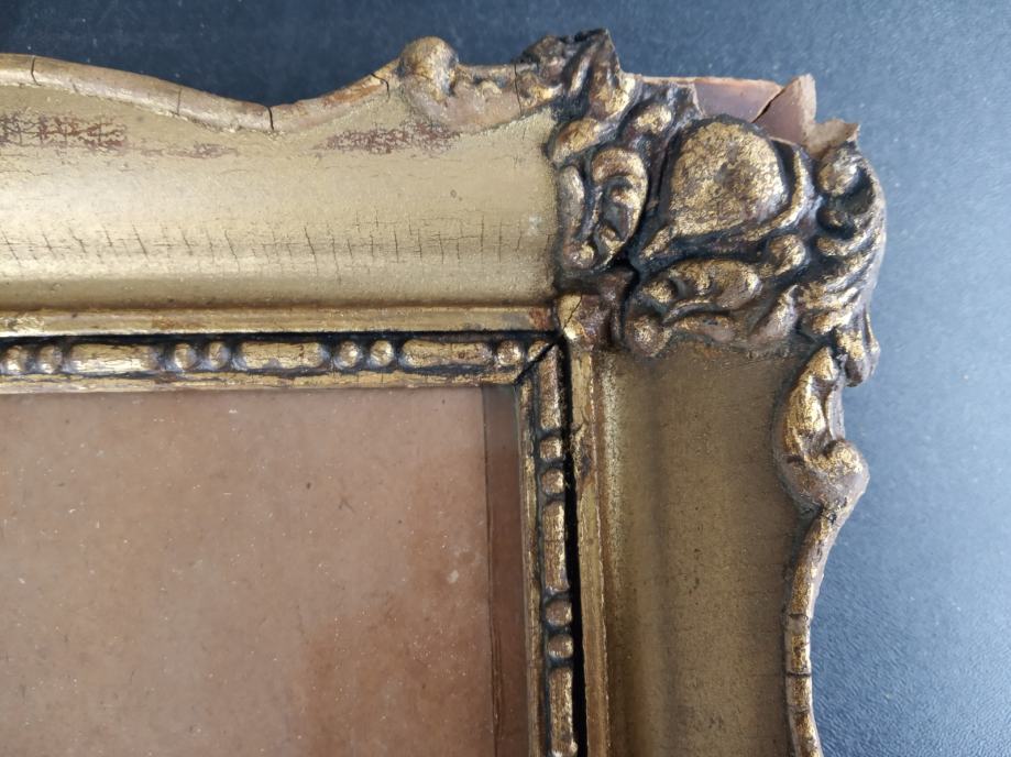 Okvir je debljine 4,5 cm,na 3 ruba malo oštećen,vidljivo na slikama,zato je niža cijena