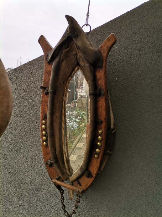 Bavarsko ogledalo jaram drvo koža ručna izrada pogodan za pecare i terase