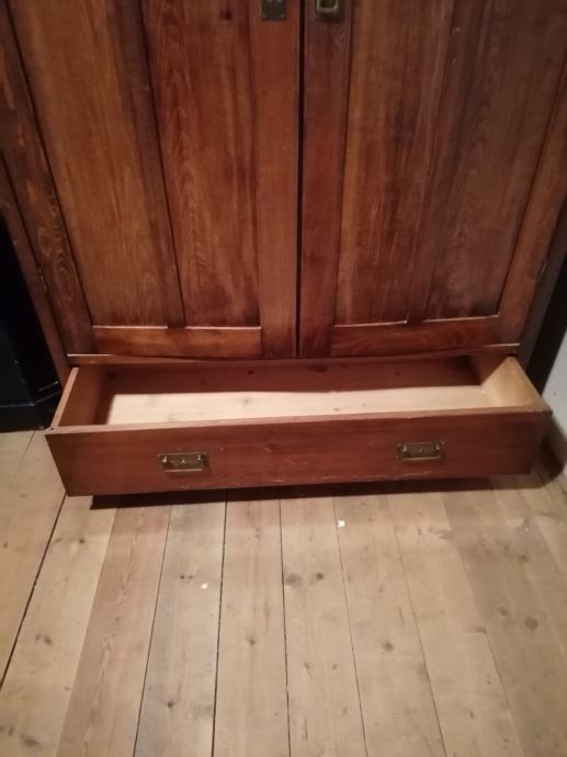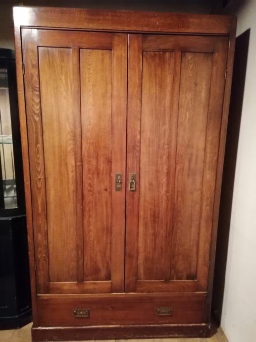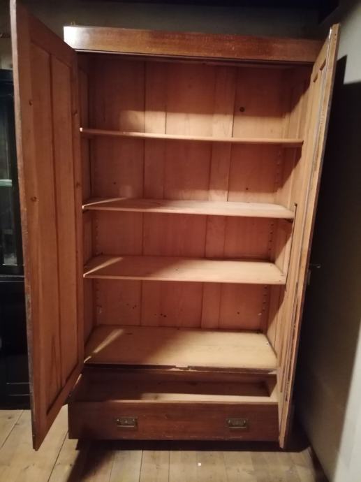Starinski ormar, lijepo očuvan i funkcionalan, s donjom ladicom dimenzija širine 112 cm x visine 189 cm i dubine 48 cm.