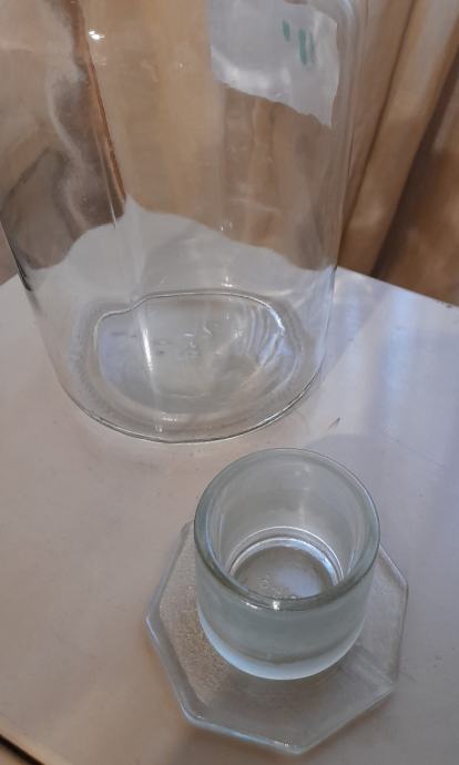 Apotekarska boca ,stojnica od 2 litre starinska sa pripadajućim čepom.U odlicnom stanju .Visina boce 26 cm,promjer dna13 cm,pro.jerotvora 6cm.Nema zamučenja na staklu.Ne saljem.