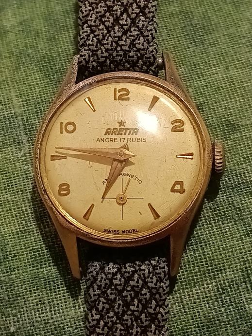 Prodajem zenski vintage automatic sat Aretta 17 rubis, Swiss model, ispravan, nedostaje jedna iglica na satu za kaiš. Plačanje na račun ili gotovina.