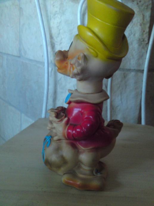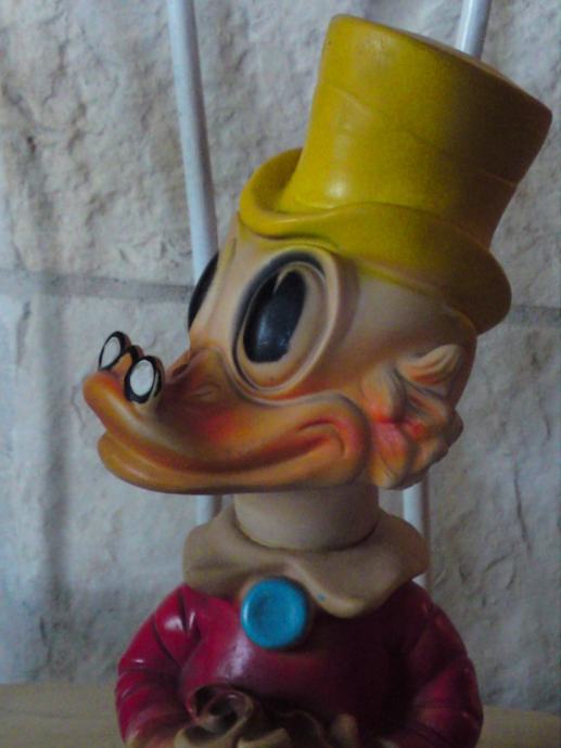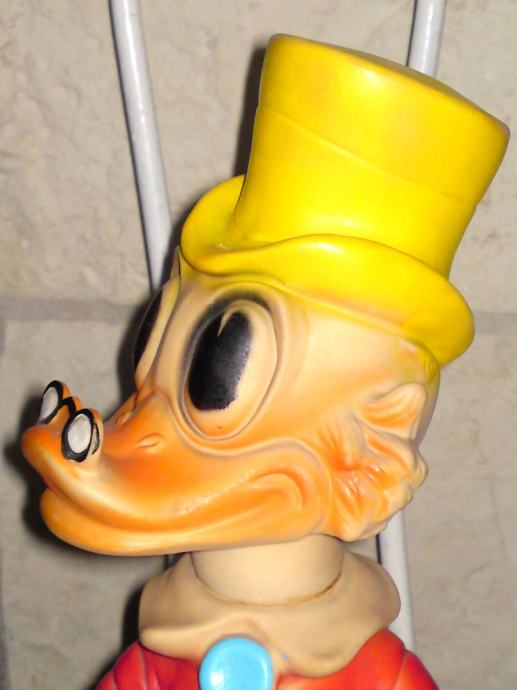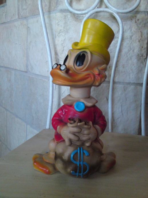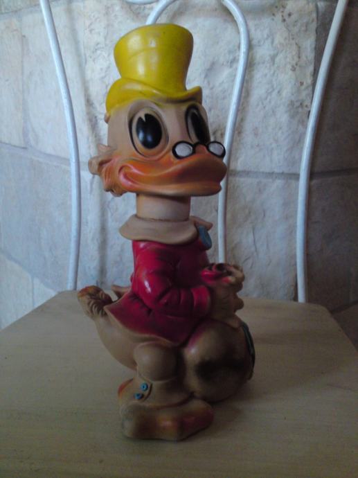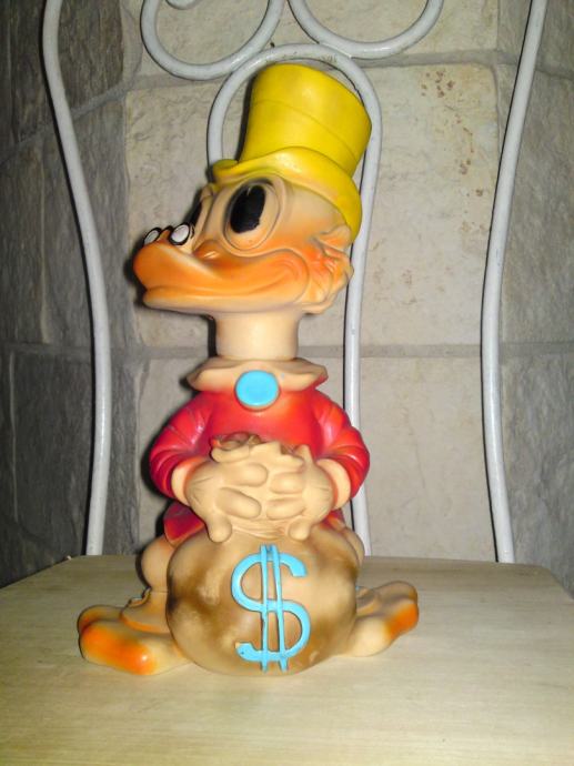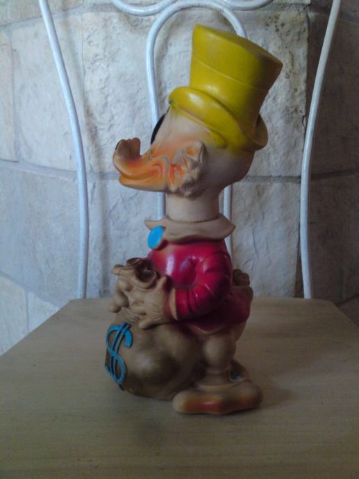 Gumena igračka - škrti stric Baja koju je izrađivala Biserka Zagreb po licenci Walta Disneya. Ova figura je raritetna i izuzetno tražena kod kolekcionara zbog žutog šešira, češći su crni i plavi.Stanje. odlično.