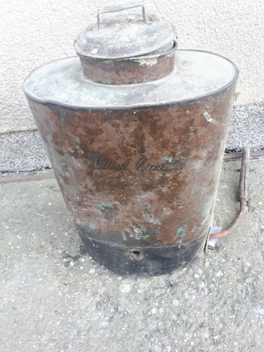Stara leđna bakrena prskalica malo oštečena,da se izravnati.