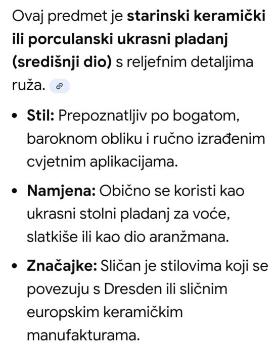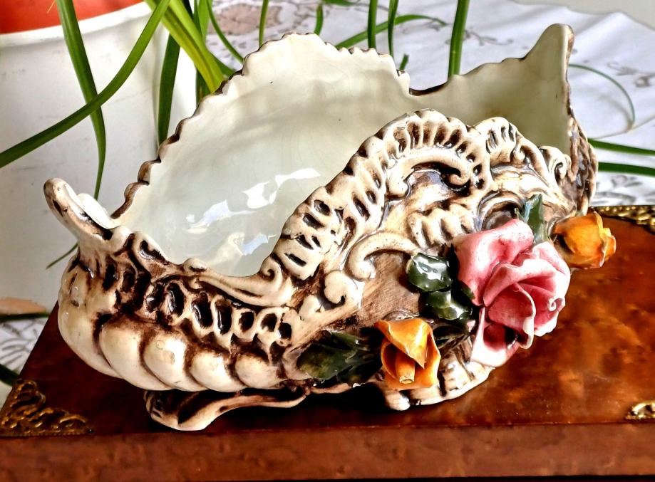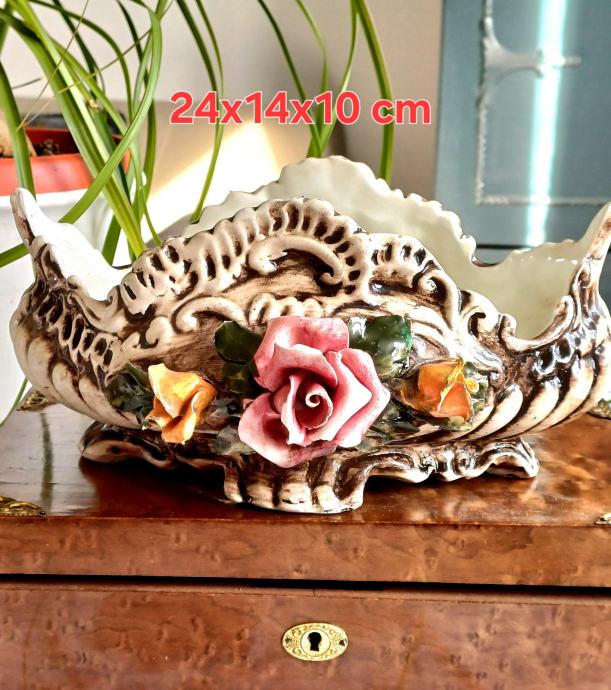 Izuzetno lijepa, stara, ručno rađena zdjela za voće izrađena u poznatoj talijanskoj Bassano manufakturi .